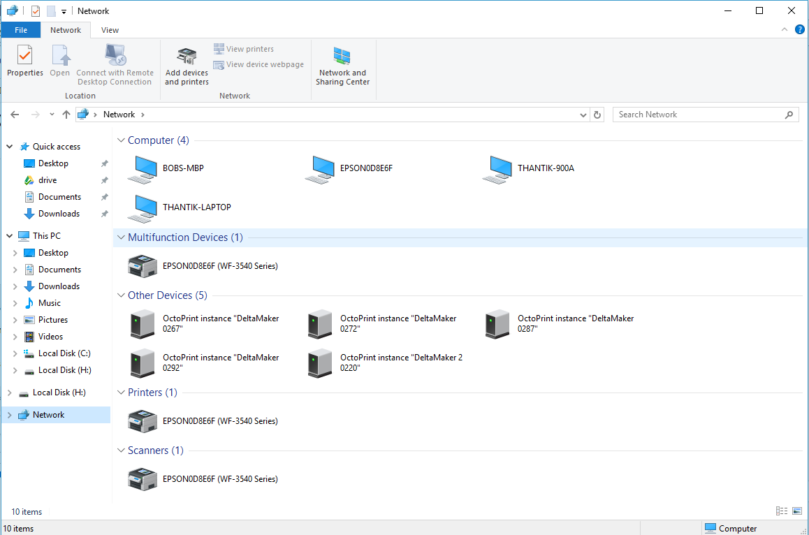 Connect an ethernet cable between the ethernet port on the computer, and the ethernet port on the DeltaMaker. It is not necessary to restart the DeltaMaker. From there, you can open up Windows Explorer, click on the "Network" section, and find your DeltaMaker listed as a device.